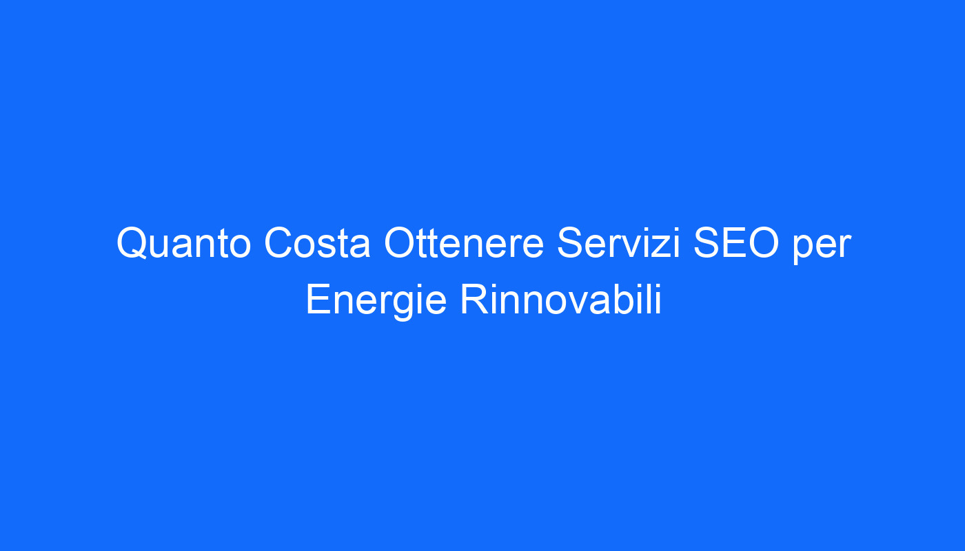 Risparmia tempo e denaro con i servizi SEO per Energie Rinnovabili