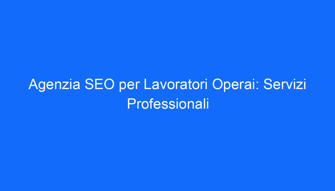 Migliora la visibilità online dei tuoi servizi operai con un’agenzia SEO professionale