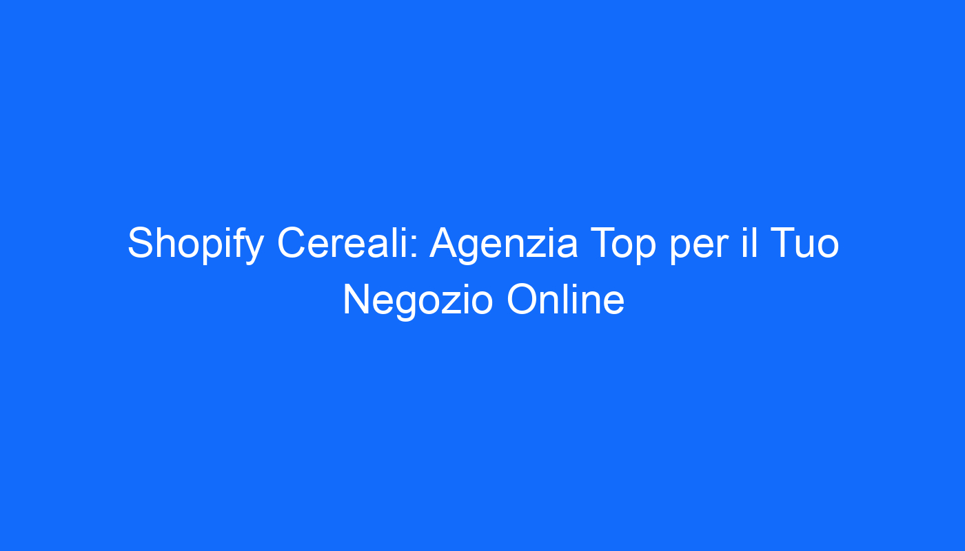 Crea il tuo negozio online con Shopify Cereali: l’agenzia top per il successo