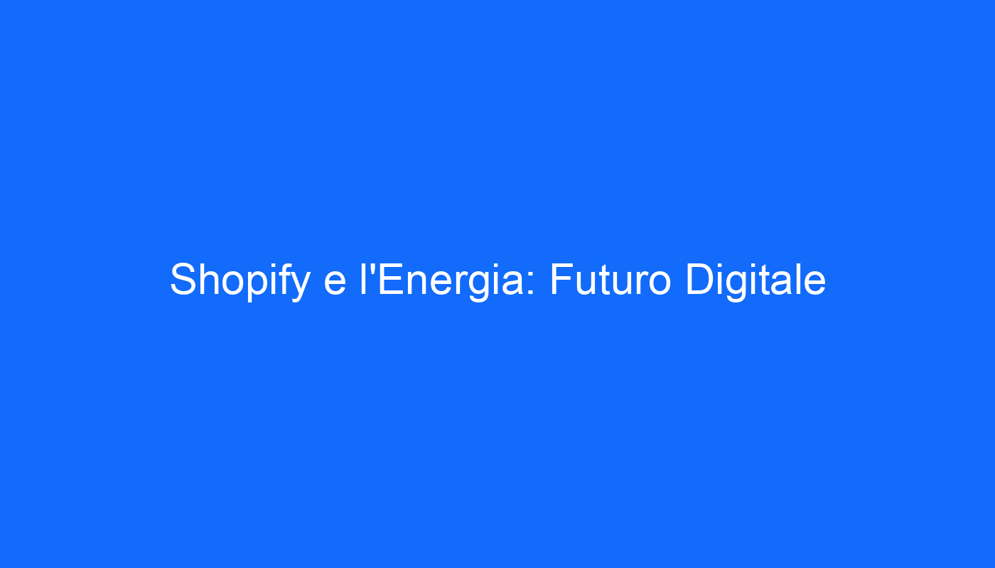 Innovazione Shopify nell’Energia: Sfruttare il Potere del Digitale