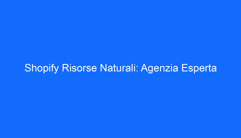 Shopify Risorse Naturali: Agenzia Esperta per la Tua Crescita Online