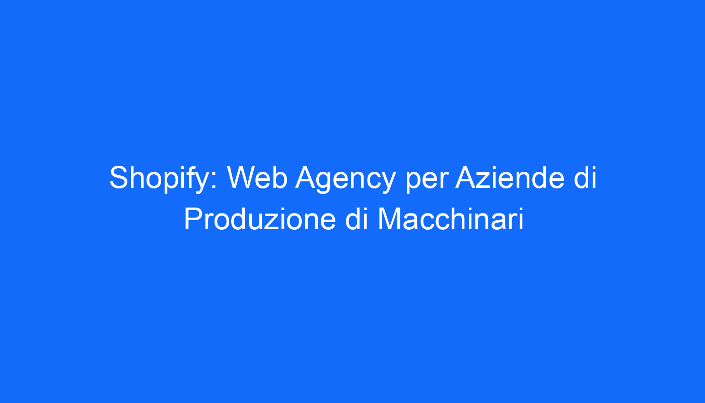 Shopify: Web Agency per Aziende di Produzione di Macchinari