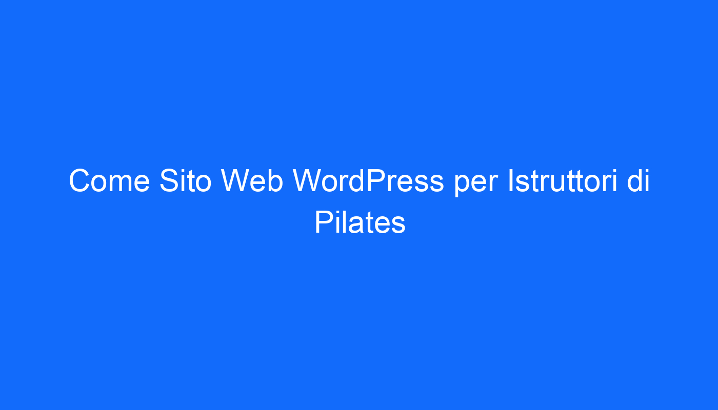 Crea un Sito Web WordPress Professionale per Istruttori di Pilates