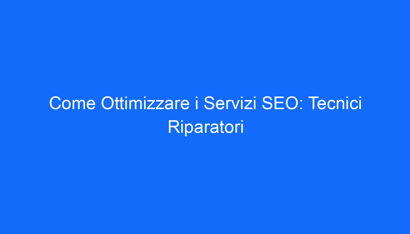 Ottimizzare i servizi SEO è fondamentale per garantire un posizionamento di successo e massimizzare l’efficienza dei tuoi servizi di riparazione. Segui i consigli forniti in questo articolo per migliorare la visibilità del tuo sito web e attrarre un pubblico di qualità. Ricorda che l’ottimizzazione dei servizi SEO richiede tempo e impegno, ma i risultati saranno sicuramente gratificanti. Non esitare a rivolgerti a un professionista del settore per ottenere un aiuto esperto nella tua strategia di ottimizzazione dei servizi SEO.
