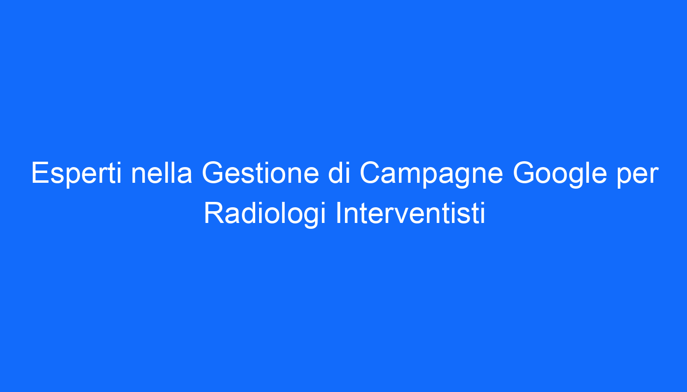 Esperti nella Gestione di Campagne Google per Radiologi Interventisti
