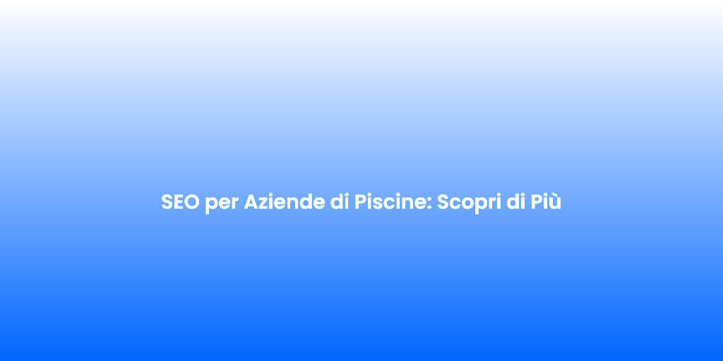 Immergiti nel Mondo della SEO per Aziende di Piscine: Le Chiavi per il Successo Online
