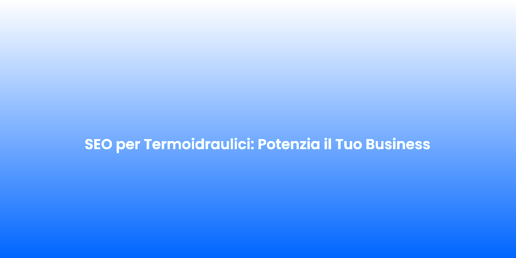 SEO per Termoidraulici: Potenzia il Tuo Business