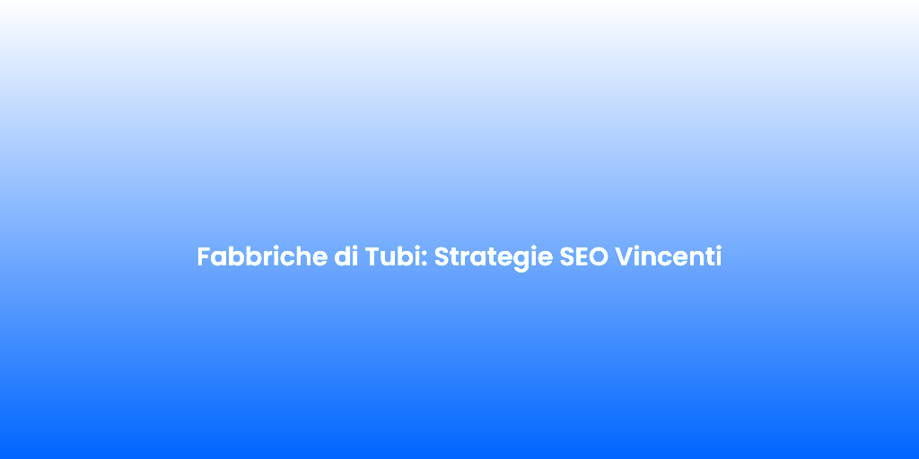 Fabbriche di Tubi: Strategie SEO Vincenti