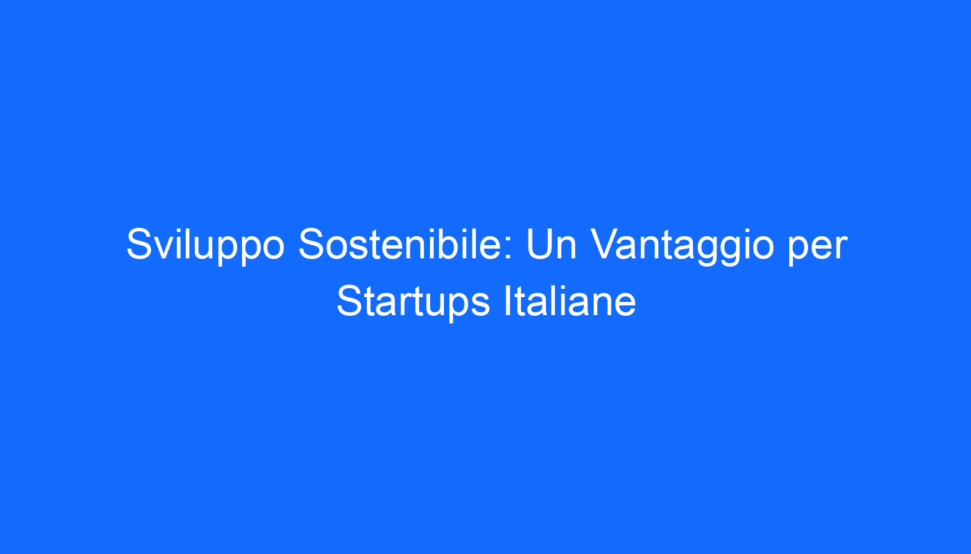 Vantaggi del Sviluppo Sostenibile per Startups Italiane: Una Scelta Vincente