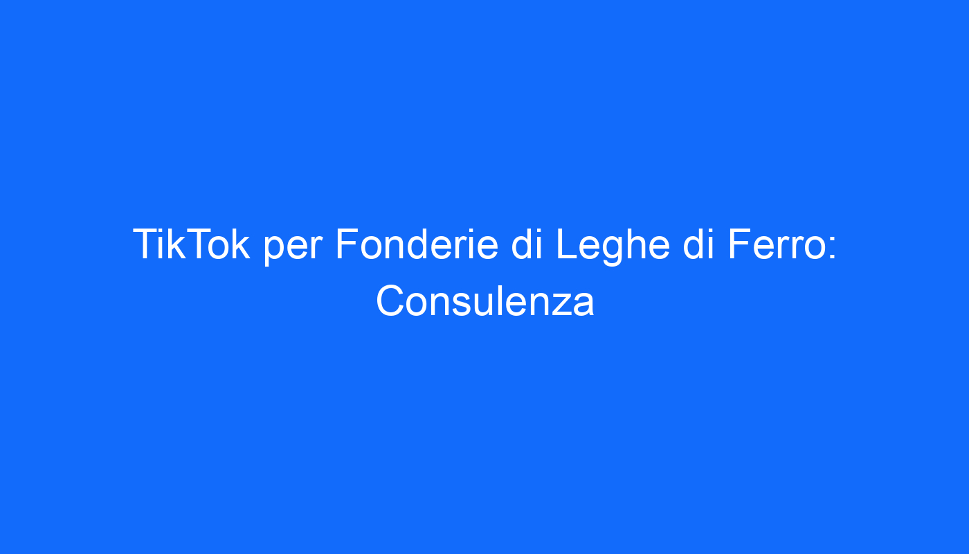 TikTok per Fonderie di Leghe di Ferro: Consulenza