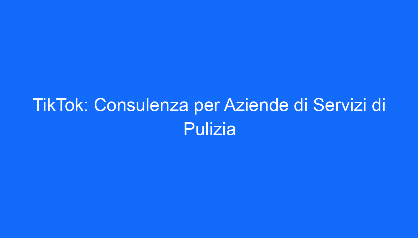 TikTok: Consulenza per Aziende di Servizi di Pulizia
