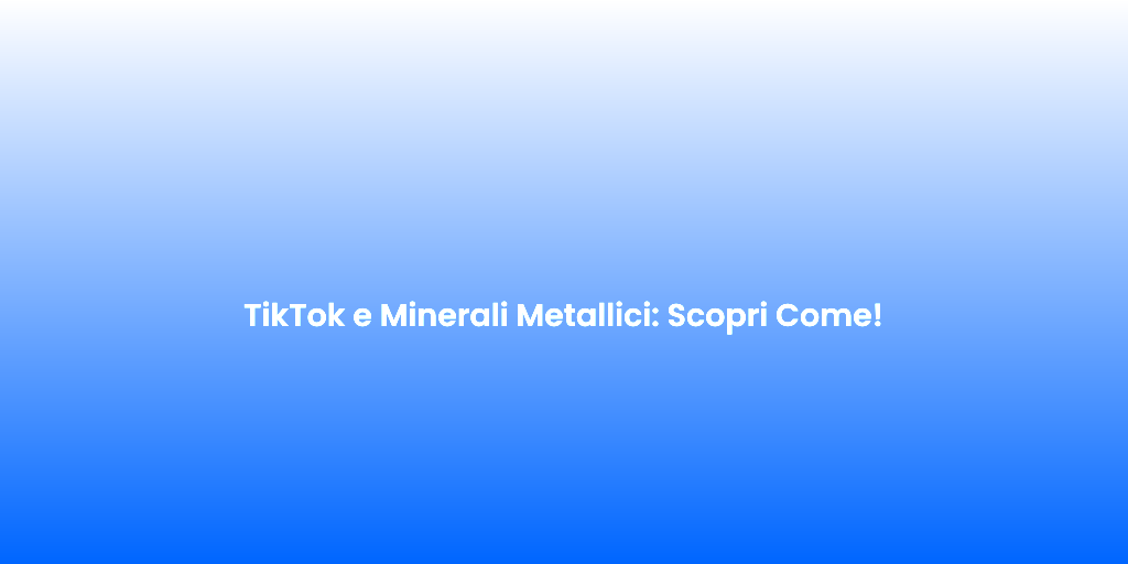 Nel panorama attuale dei social media, TikTok si è affermato come uno dei principali canali di comunicazione e condivisione di contenuti, influenzando in modo significativo le percezioni e le scelte di milioni di utenti. Ma cosa succederebbe se unissimo il potente mondo di TikTok con una risorsa fondamentale della nostra società, come i minerali metallici? In questo articolo, esploreremo le potenzialità di questa combinazione, analizzando come TikTok possa educare, informare e intrattenere sulle varie caratteristiche e applicazioni dei minerali metallici. E non dimenticare: i risultati rapidi e duraturi possono essere ottenuti con l’aiuto di esperti come noi di Ernesto Agency.