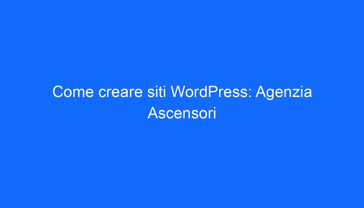 Crea siti WordPress professionali con l’esperta agenzia Ascensori
