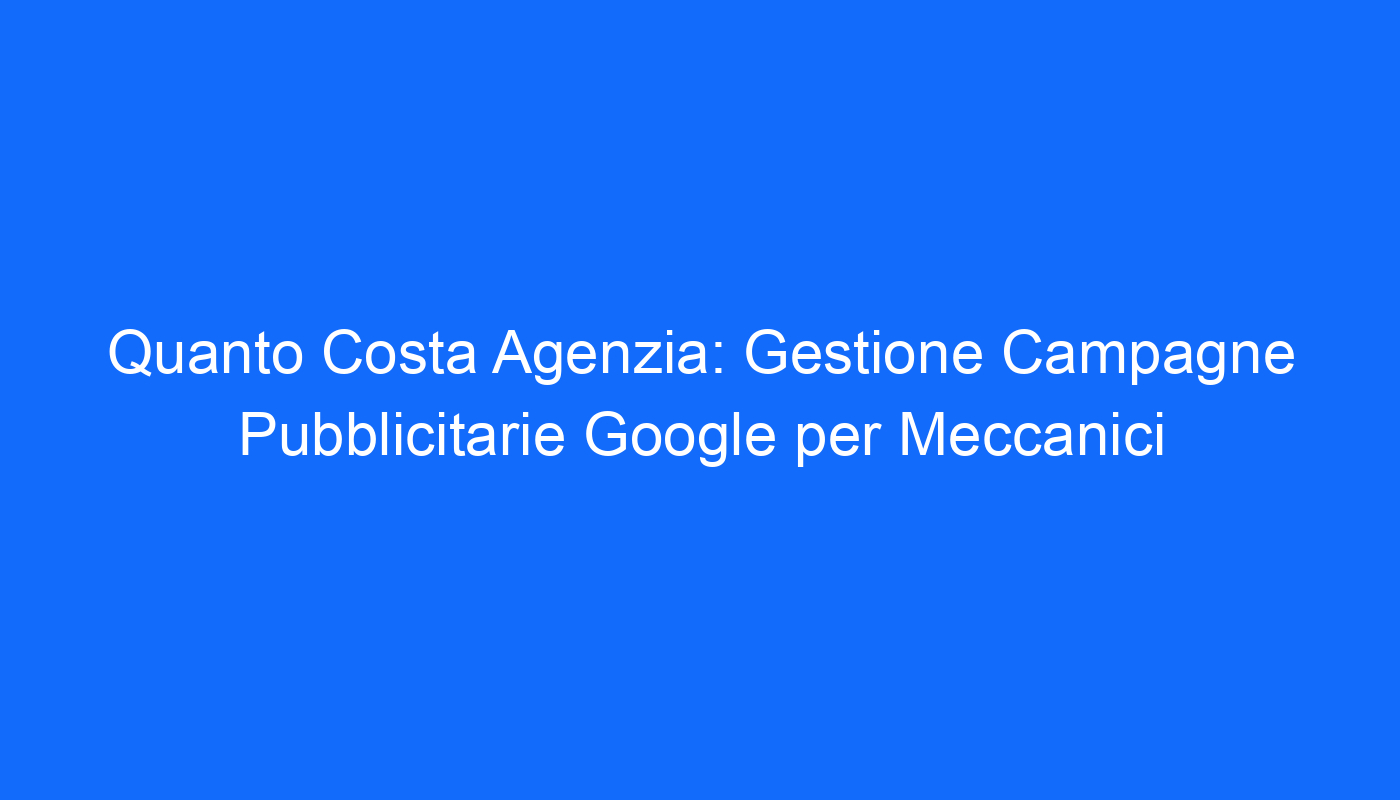 Quanto Costa Agenzia: Gestione Campagne Pubblicitarie Google per Meccanici