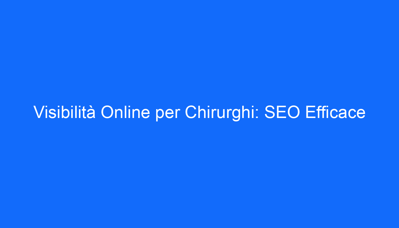 Nel competitivo mondo della sanità, il marketing online è diventato un elemento cruciale per ogni professionista, in particolare per i chirurghi generici. La visibilità su Google gioca un ruolo determinante nel punto di vista del paziente; avere una presenza online efficace significa non solo ottenere nuovi pazienti, ma anche costruire una reputazione di fiducia. In questo contesto, è fondamentale comprendere come una consulenza SEO specializzata possa fare la differenza. I nostri servizi sono progettati per ottimizzare la tua presenza online, attrarre più pazienti e migliorare la tua reputazione nel settore medico.