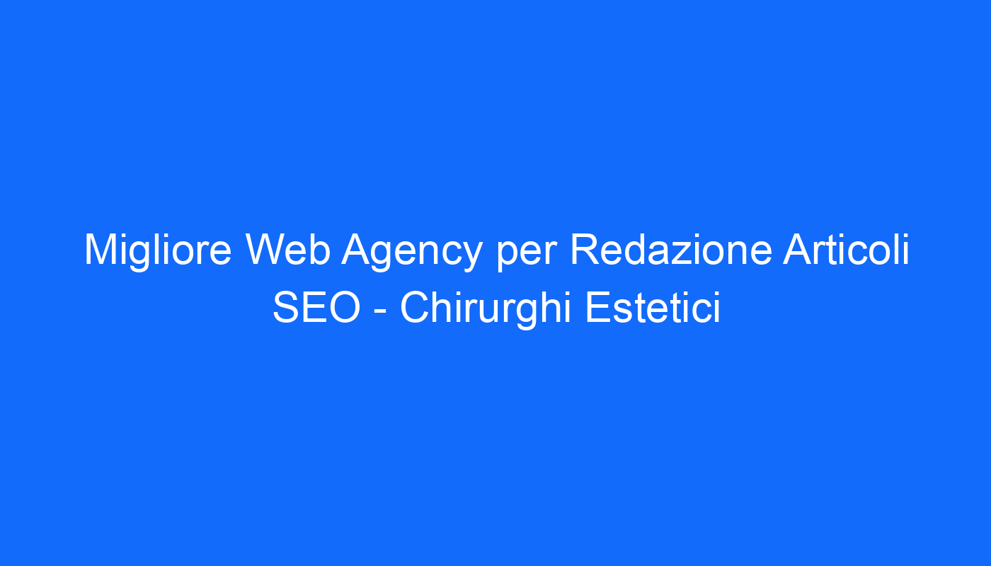 Migliore Web Agency per Redazione Articoli SEO – Chirurghi Estetici: Dominio online di Successo