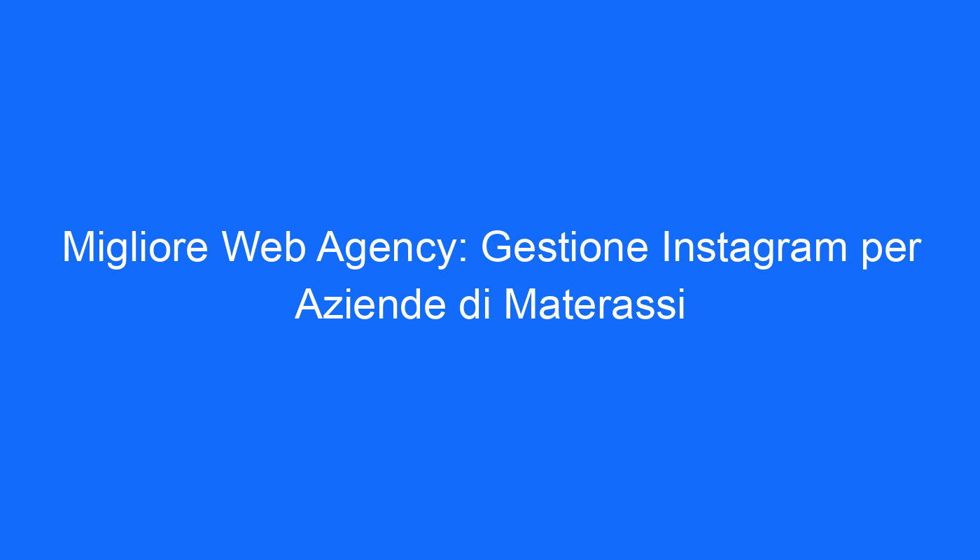 Migliore Web Agency: Esperti in Gestione Instagram per Aziende di Materassi