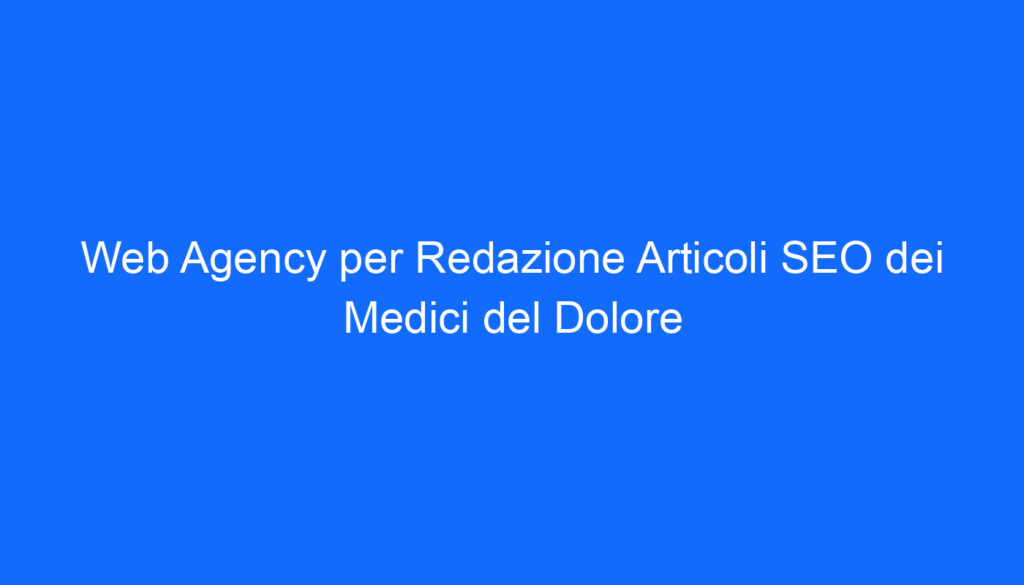 Sei un medico specializzato nel trattamento del dolore e desideri aumentare la visibilità online della tua clinica? Sei alla ricerca del miglior servizio di redazione articoli SEO per promuovere la tua attività? Se la risposta è sì, allora sei nel posto giusto. La nostra web agency è specializzata nell’aiutare i medici del dolore a ottenere una maggiore visibilità online e ad aumentare il traffico verso il loro sito web.