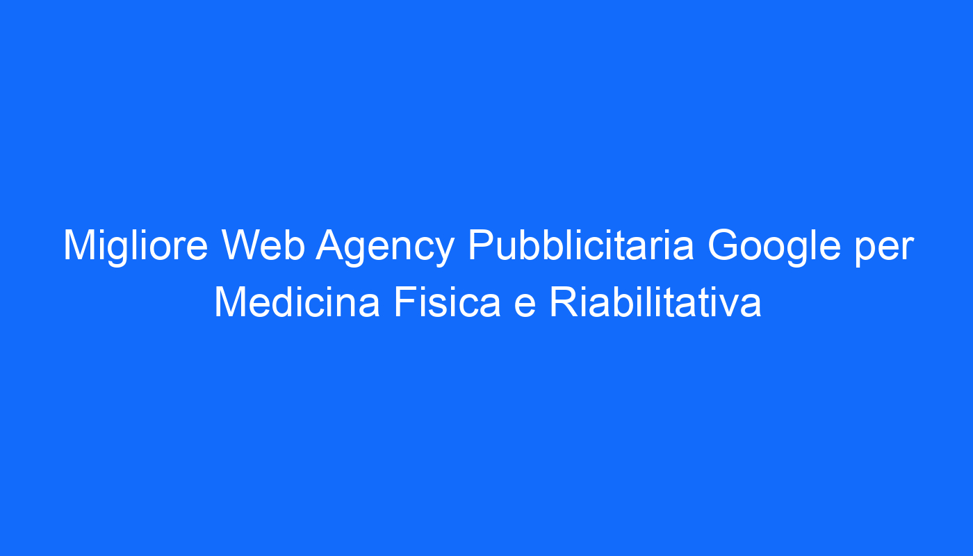 La migliore web agency pubblicitaria Google per la medicina fisica e riabilitativa