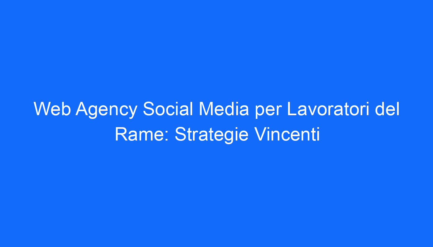 Se sei un lavoratore del rame in cerca di nuove strategie per aumentare la tua visibilità e i tuoi profitti, allora sei nel posto giusto! I social media sono diventati uno strumento essenziale per promuovere i tuoi servizi e raggiungere un pubblico più ampio. Con l’aiuto di una web agency specializzata, puoi sfruttare al massimo il potere dei social media e ottenere risultati sorprendenti. In questo articolo, ti presenteremo alcune strategie vincenti per promuovere il tuo business di lavorazione del rame su piattaforme come Facebook, Instagram e LinkedIn. Scopri come fare la differenza e attirare nuovi clienti!