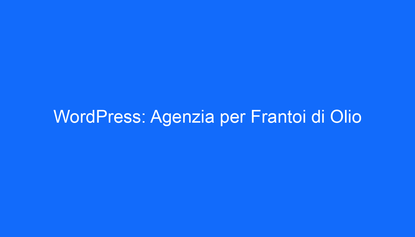 Sfrutta il potenziale di WordPress per la tua Agenzia di Frantoi di Olio