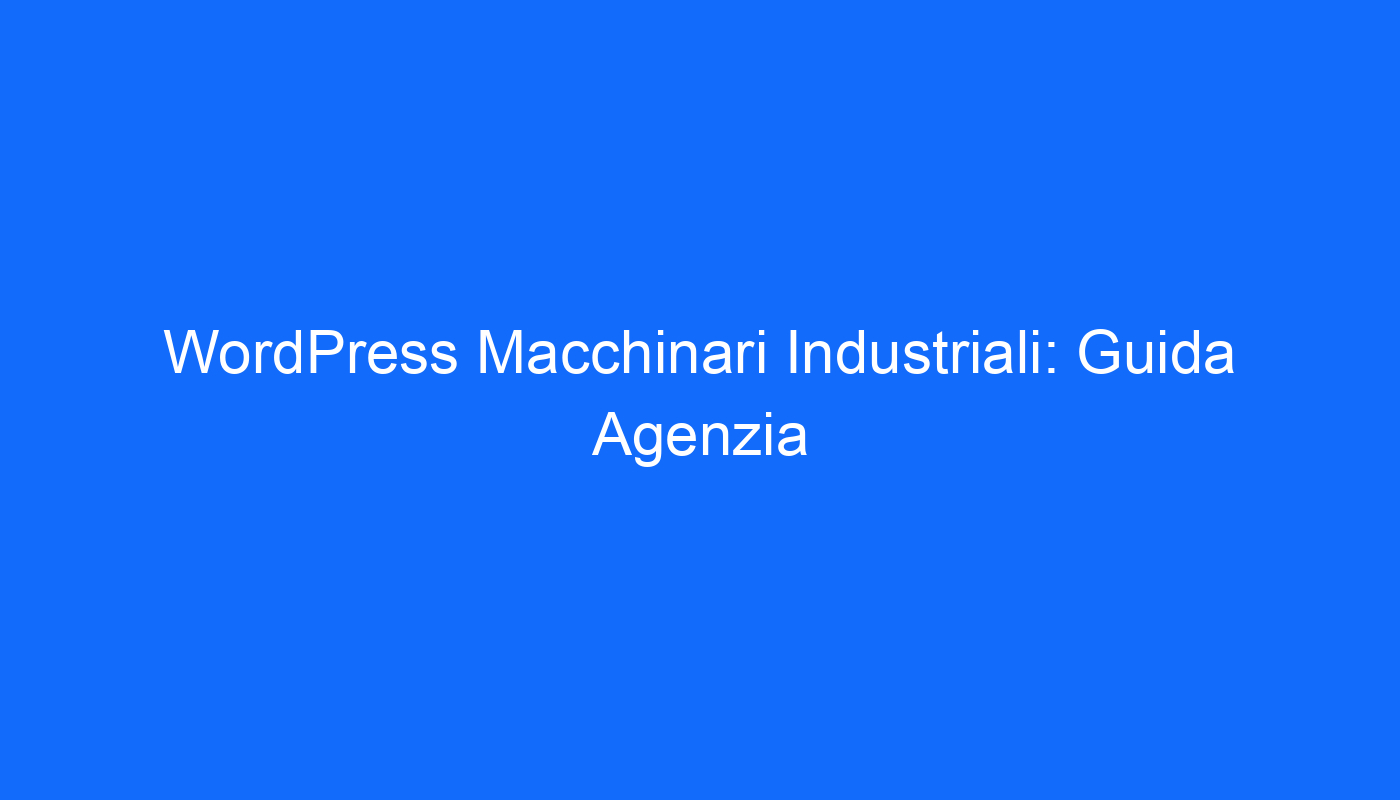 Massimizza l’efficienza e la produttività dell’industria con WordPress Macchinari Industriali: Guida Agenzia